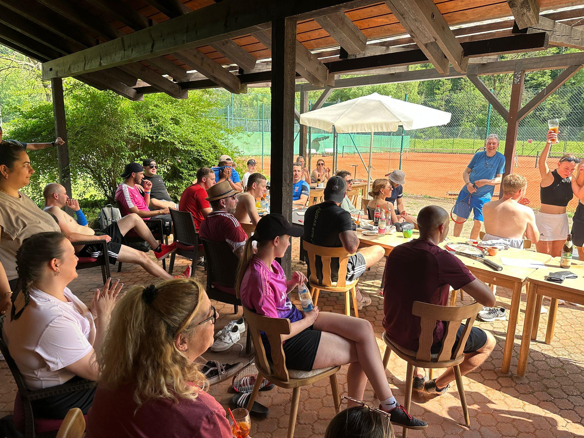 Ein voller Erfolg war unser Mix-Turnier am 31.05.2025. Pünktlich um 11 Uhr starteten 12 hochmotivierte Teams in den Wettkampf, der in zwei Gruppen ausgetragen wurde auf unseren zwei Plätzen eifrig Tennis gespielt. Trotz hochsommerlicher Temperaturen war die Stimmung ausgelassen und fröhlich. Für Abkühlung und Stärkung war mit reichlichen Getränken und leckerem Flammkuchen bestens gesorgt. Von Anfängern bis zu erfahrenen Spielerinnen und Spielern war alles dabei und genau das machte den besonderen Reiz unseres Turniers aus. Wir möchten uns herzlich bei allen Teilnehmenden für ihr Kommen und die fairen Matches bedanken. Ein riesengroßer Dank geht auch an unsere fleißigen Helferinnen und Helfer, die unermüdlich im Einsatz waren, sowie an alle gr0ßzügigen Kuchenspender, die für eine köstliche Kuchenauswahl sorgten. Ohne euch wäre dieser wunderbare Tag nicht möglich gewesen! Wir freuen uns schon auf das nächste Mix-Turnier!