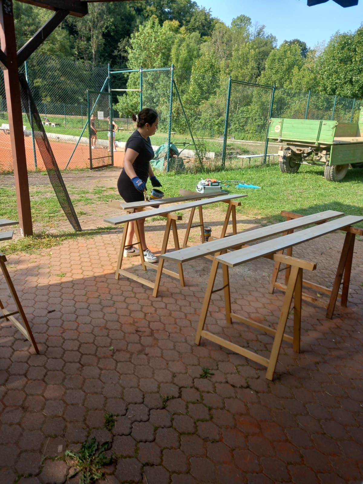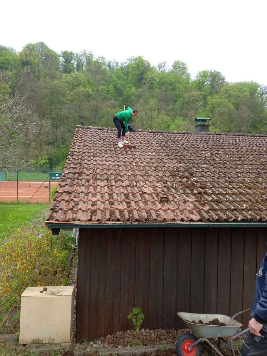 • Rund um den Tennisplatz und die Anlage: Das lästige Unkraut wurde gründlich entfernt, sodass unsere Plätze und Wege wieder einwandfrei aussehen. • Tennisheim in neuem Glanz: Im Tennisheim wurde geputzt, sortiert und es wurde ein neues Regal aufgebaut, um mehr Ordnung und Stauraum zu schaffen. • Tenniskammer und Dachboden entrümpelt: Unsere Tenniskammer ist nun wieder übersichtlich und sauber, auch der Dachboden ist nun wieder betretbar. • Dachpflege: Dachrinne und Dach wurden abgespritzt und gereinigt. • Fassadenverschönerung: Neue Holzbretter für die Fassade des Tennisheims wurden gestrichen und fachgerecht angebracht, was unserem Heim ein frisches Aussehen verleiht. • Grünpflege: Bäume und Pflanzen wurden geschnitten, um unsere Anlage noch attraktiver zu gestalten.