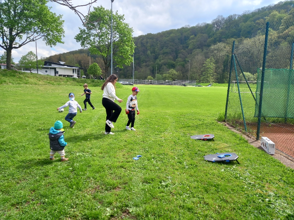 Boule, Fußball, verschiedene Ballspiele, mit dem Tennisschläger oder auch mit dem Fußball auf die Torwand schießen und natürlich erste Übungen zum Tennisspielen.