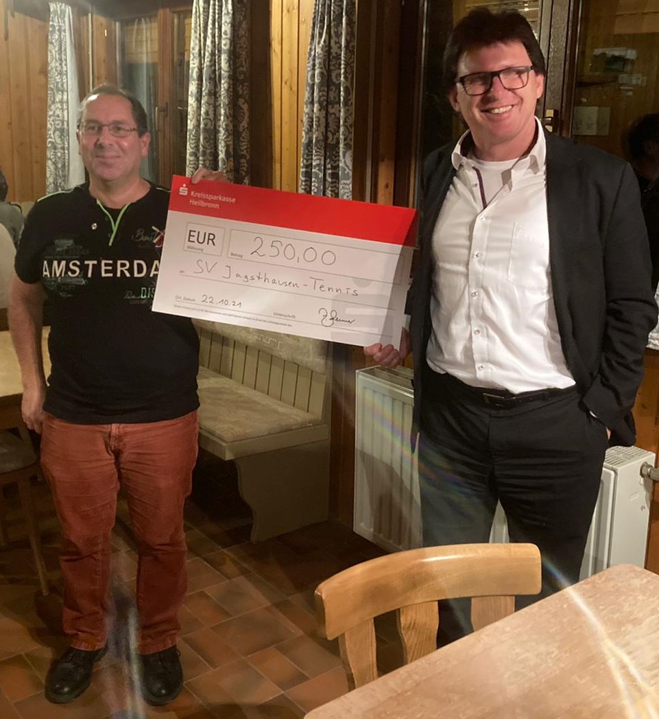 Unser langjähriger Kassierer Andreas Renner überreichte dem Tennisverein eine großzügige Spende von 250 Euro von der Kreissparkasse. Hierfür bedanken wir uns herzlich für sein unermüdliche Einsatz.