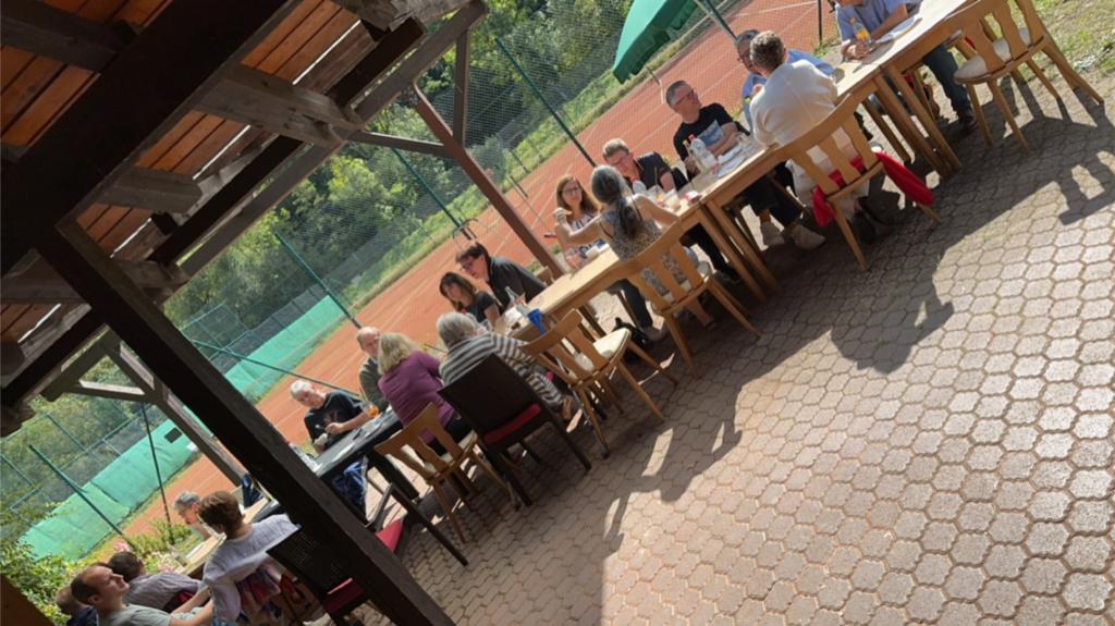 Als kleines Dankeschön wurden die vielen fleißigen Helfer beim Dorffest auf der Tennisanlage zum gemeinsamen Tennis und Boule eingeladen. Anschließen verbrachten wir noch gesellige Stunden miteinander beim Grillen und Schlemmen der zahleichen mitgebrachen selbstgemachten Delikatessen.