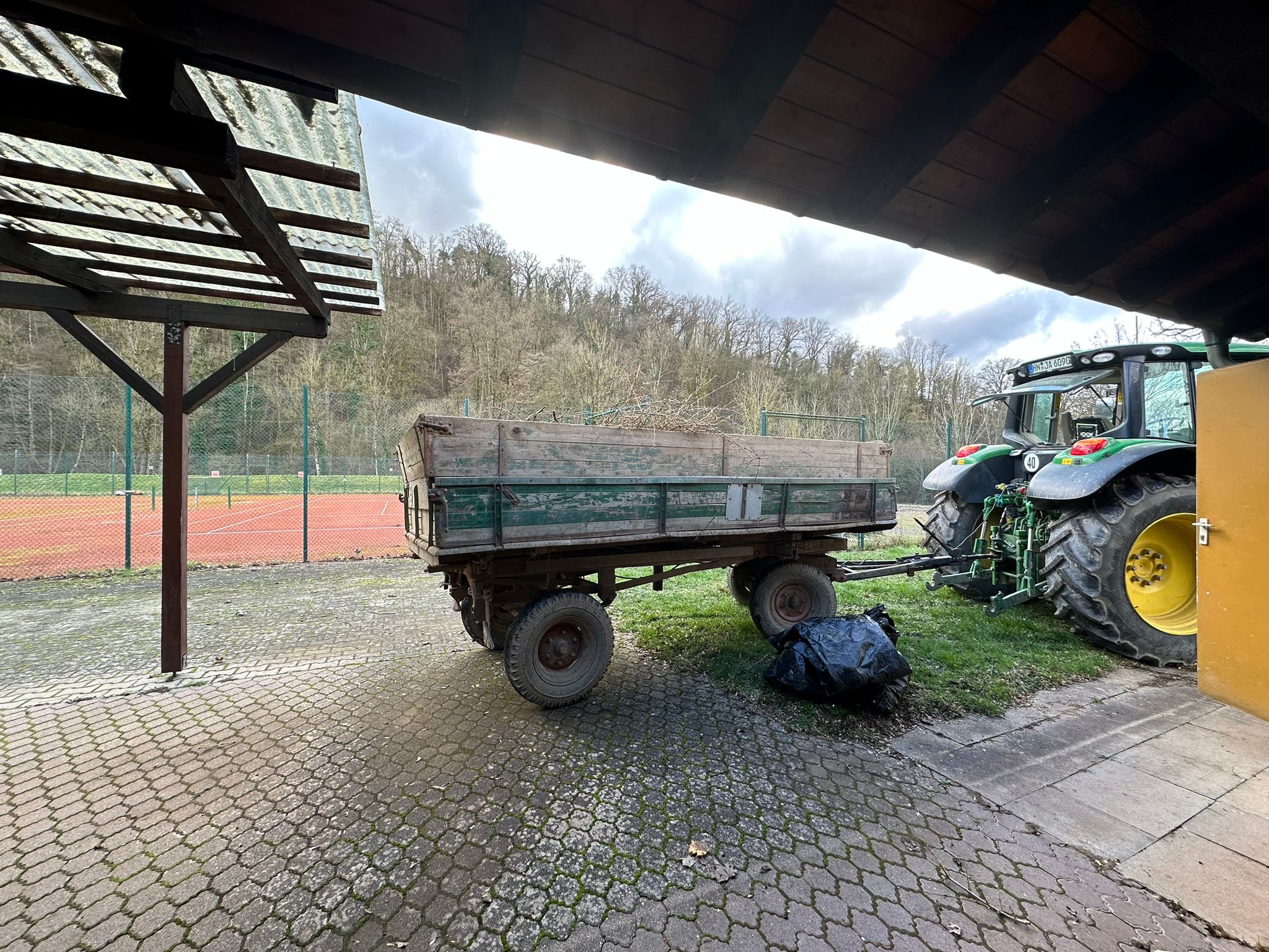 Unsere Hütte wird für das Dorffest gerichtet und schon auf den Anhänger geladen.